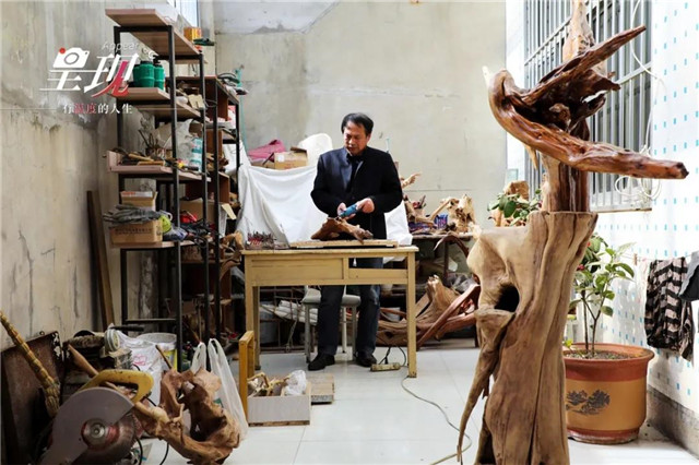 ??????良材易找,朽木難尋。更多時候,郭友之會扛著镢頭走到荒山老林里,自己去刨那些枯死的樹根,每次都累得汗流浹背,他卻樂此不疲。
