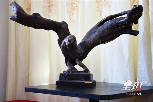 ??????做根雕需要下苦功夫,經過不斷地鉆研和打磨,1998年郭友之創作了平生第一件根雕作品——大鵬展翅,蒼勁有力的雄鷹展翅翱翔,郭友之對這件作品喜愛有加,一直保留到了現在。