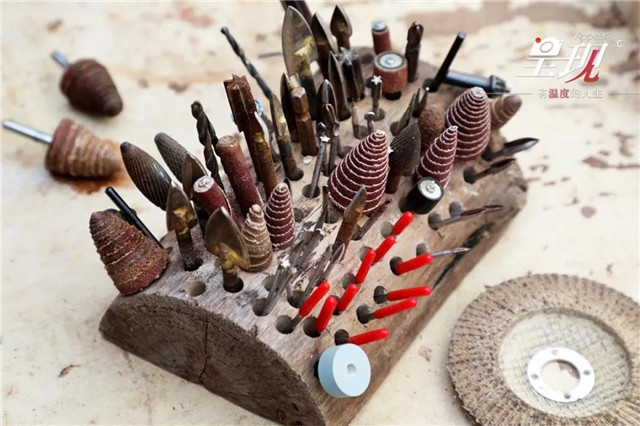 ??????一件成功的根雕作品,從選材、去皮、打磨、著色、配座到成品,需要幾十道工序,歷時幾十天、幾個月,甚至更長的時間來完成。忘記日升月落,不理斗轉星移,沉浸在根雕世界的郭友之,常常癡迷到忘記時間,在操作室的方寸之間,錘起鏨落,塑出心中的藝術品。