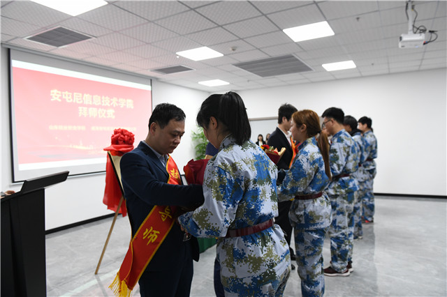 ??????在安屯尼信息技術學院,學校和企業的深度合作充分發揮了學校和企業兩個主體在培養人才方面的優勢,讓學生在學習理論基礎知識的同時,接受企業精神、企業文化的熏陶,促進學生全方位發展,提升綜合性素質。當天,還進行了校企雙方互聘儀式,為安屯尼實業發展有限公司首席專家、指導專家、項目副總監、客座教授,以及山東鋁業職業學院職場導師、技能導師頒發聘書,并舉行拜師儀式。