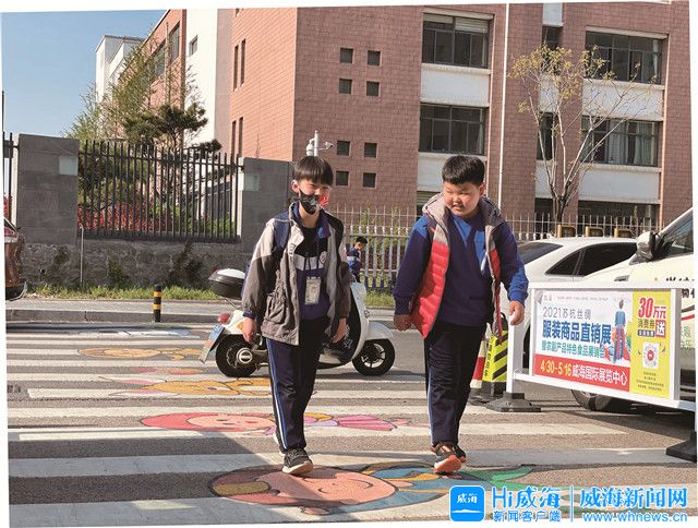 6日下午4時,正值放學時間,不少孩子在家長的陪同下排隊有序通過斑馬線。趣味橫生的圖畫和孩子們可愛的笑臉交相輝映,孩子們回家的步伐更歡快了。