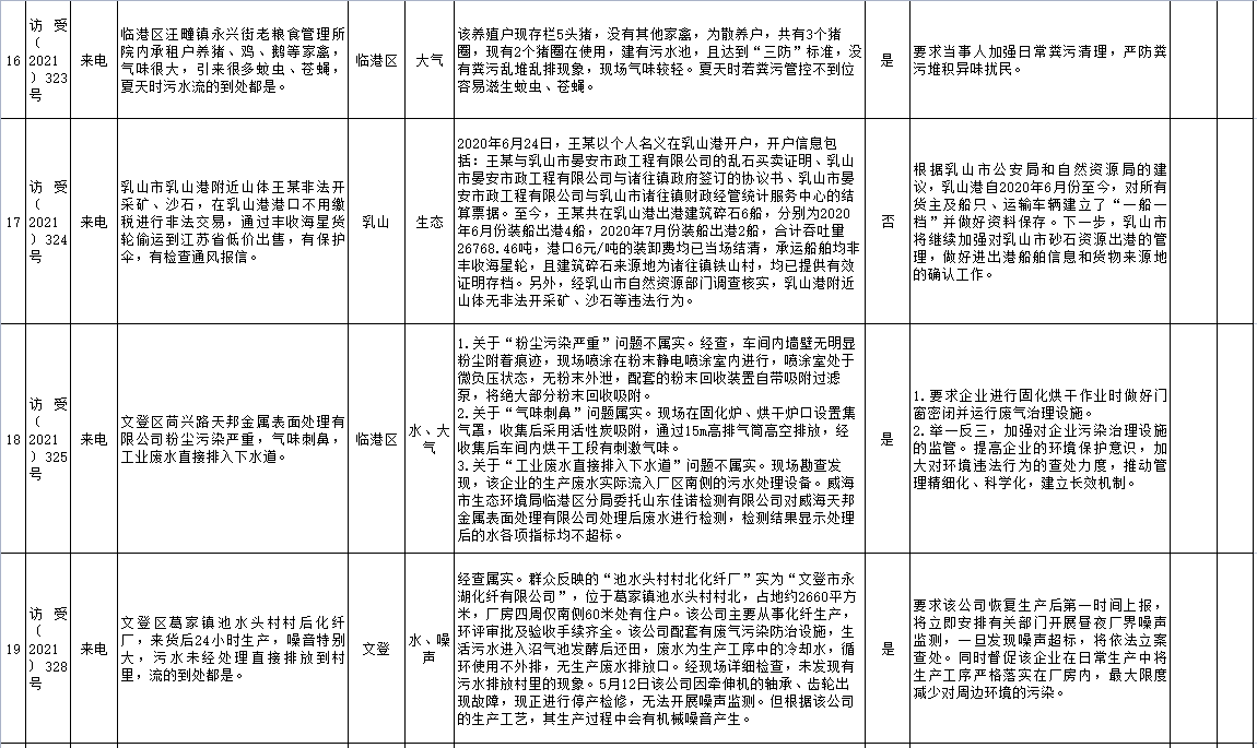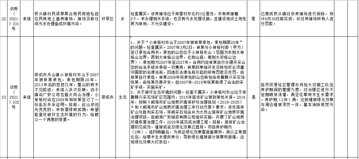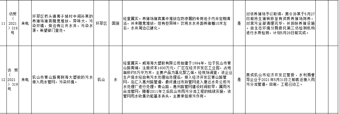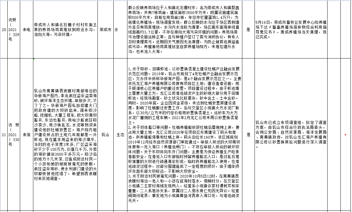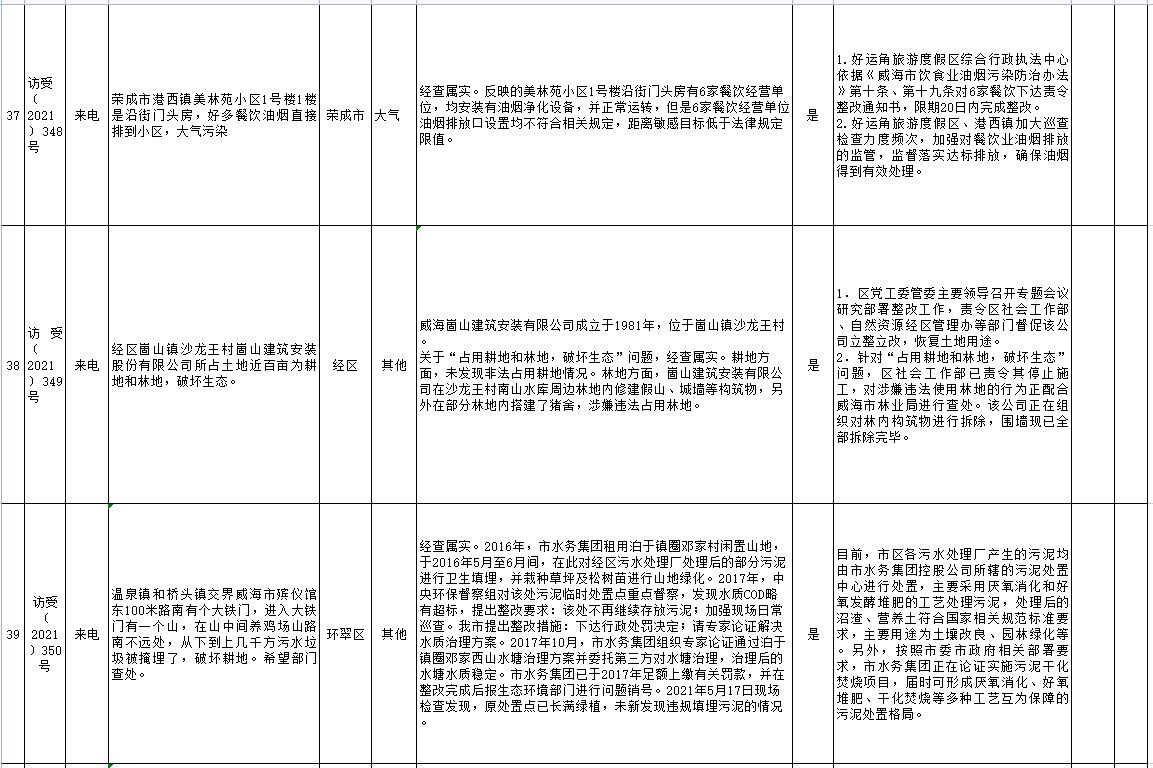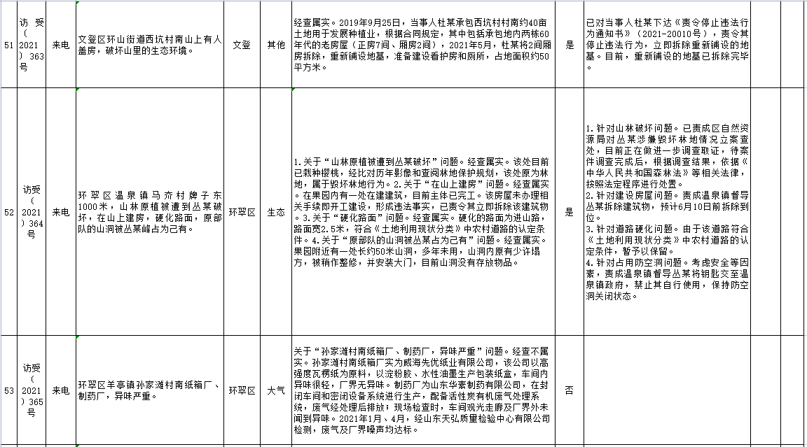 山東省第五生態環境保護督察組信訪舉報件及邊督邊改公開情況(第五批)