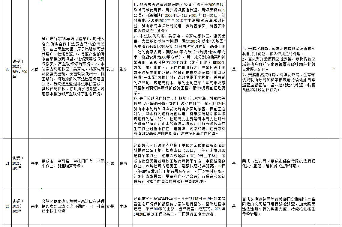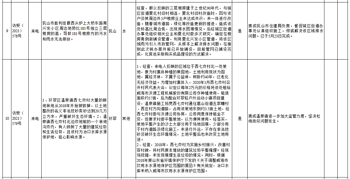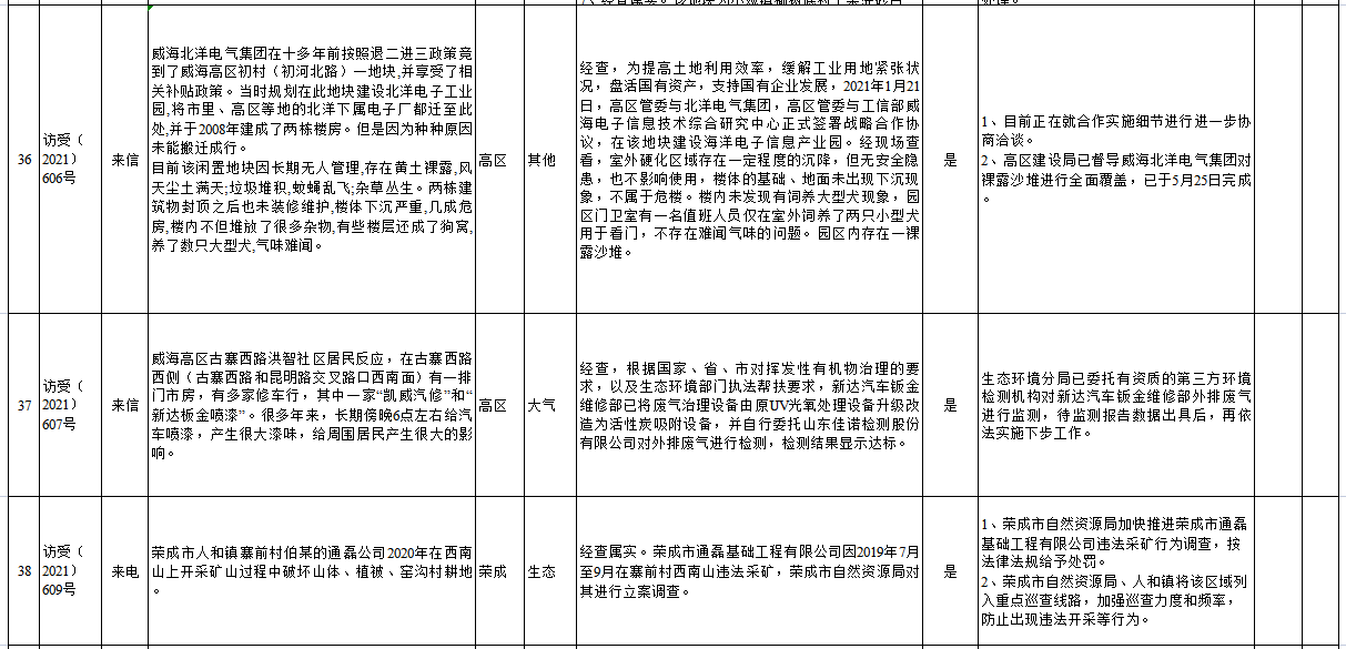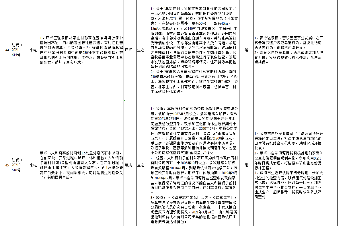 山東省第五生態環境保護督察組信訪舉報件及邊督邊改公開情況(第九批)