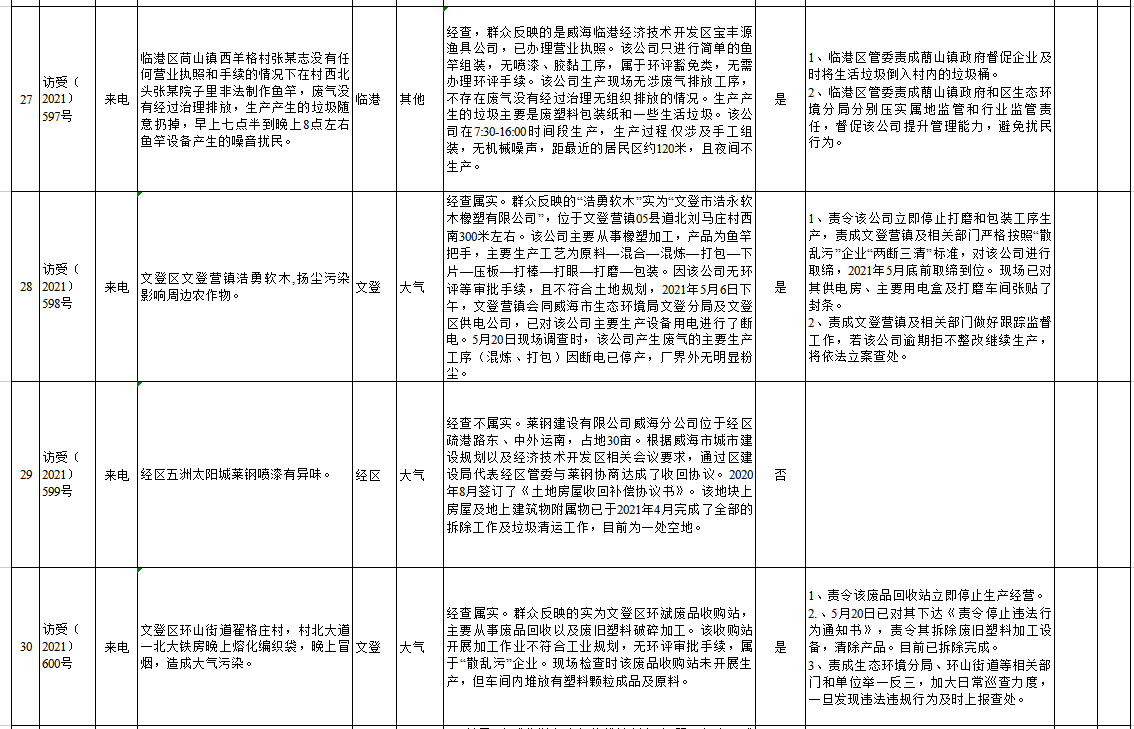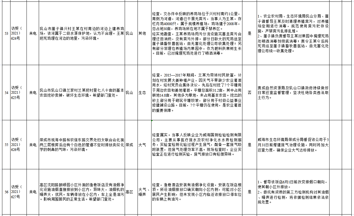 ??????山東省第五生態環境保護督察組向我市交辦第九批信訪件共計61件。截至5月26日12時,已全部辦結。其中屬實54件,不屬實7件。
