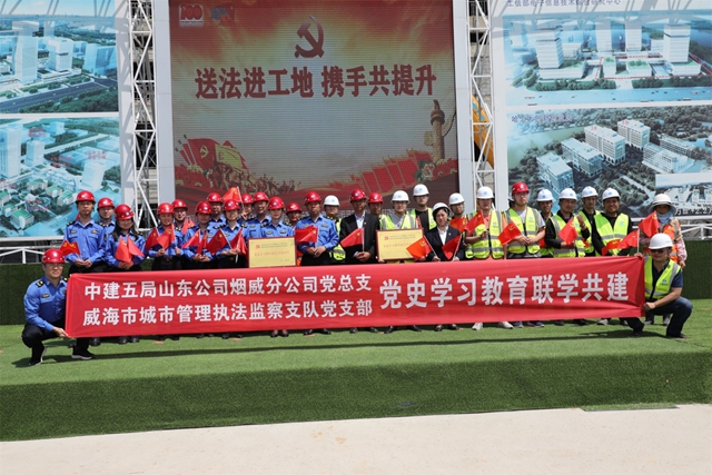 ????“送法進工地、攜手共提升”黨建共建活動,是中建五局山東公司煙威分公司黨總支與威海市城市管理執法監察支隊黨支部黨建共建優勢轉換為服務群眾的實際行動,取得了不錯的反響。今后,雙方將繼續創新黨建共建工作的有益嘗試,攜手共進,為社會發展貢獻更多力量!
