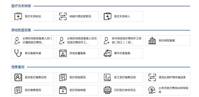 ????在“服務(wù)目錄”專欄,列出了能夠網(wǎng)上辦理的各項醫(yī)保業(yè)務(wù),包括信息查詢、醫(yī)保關(guān)系、就醫(yī)備案等多個大類共34項業(yè)務(wù)。