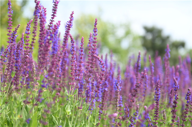 ??????行駛在城市道路上,天空澄澈碧藍,路邊鮮花盛開。在現代路兩旁,一朵朵月季花競相綻放,遠遠望去,美如云霞,讓人流連忘返。在海韻路邊,一壟壟薰衣草花開正艷,微風吹拂,翻騰起紫色浪涌,層層疊疊、上下起伏,漾蕩著瀲滟的波浪,猶如一幅壯美的畫卷。