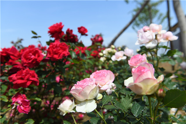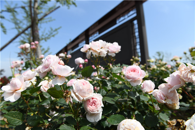 ??????眼下,東浪暖村的月季花海也已經盛開,整個月季園就像一塊綠色的“畫布”,五彩的月季用花朵在“畫布”上添了濃墨重彩的顏料色塊,白如雪、粉如霞,一片生機盎然,已有不少游客漫步其中,記錄美景。