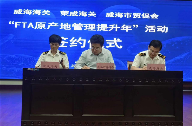 ??????當(dāng)天,威海市貿(mào)促會(huì)分別與威海海關(guān)、榮成海關(guān)簽署FTA原產(chǎn)地管理提升年合作協(xié)議備忘錄,威海國(guó)際商會(huì)與農(nóng)商銀行簽署3億元“原產(chǎn)地信用貸”合作協(xié)議。