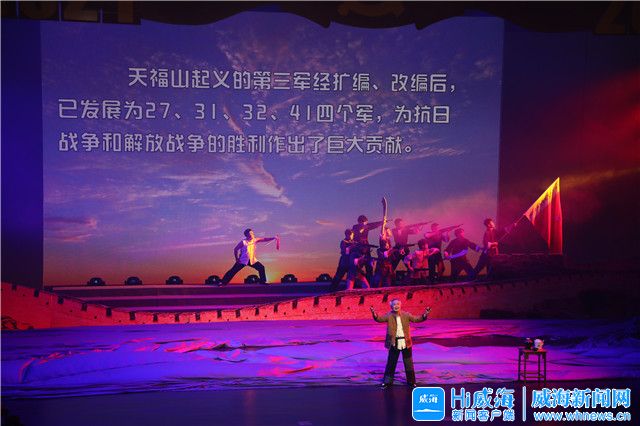 ??????本場演出是我市慶祝中國共產黨成立100周年系列活動的重要組成部分。整場演出不設主持人,各篇章以視頻講述引入,通過情境表演、音樂詩畫、京劇、群口快板等多種形式,對威海紅色歷史的豐富內涵和蓬勃發展現狀進行深入詮釋和藝術升華,生動展現了我黨百年來團結帶領中國人民不懈奮斗的光輝歷程,展現了我市在這一期間涌現出的英雄人物事跡及取得的輝煌成果,激勵動員全市干部群眾不忘初心、牢記使命,乘勢而上、接續奮斗,奮力開創“精致城市·幸福威海”建設新局面,爭當新時代現代化強省建設排頭兵。