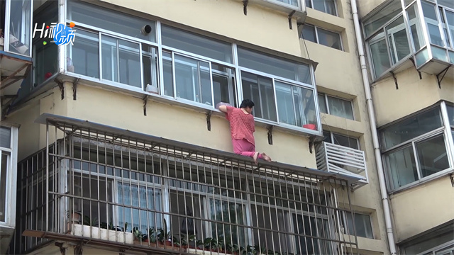 ??????7月8日10時許,位于環翠區的一居民樓,一名女子從自己家中爬到窗戶外部無法返回,只能手握窗棱,跪在樓下遮雨棚上面等待救援,情況危急,轄區北山路消防救援站緊急救援。