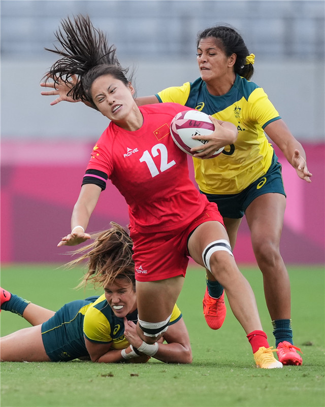 ??????在7月30日上午舉行的小組賽第三輪比賽中,中國隊29比0完勝東道主日本隊,以中日交鋒史上最大分差從“死亡小組”中突圍,歷史性地闖入了八強。后與實力強勁的法國隊在四強爭奪戰(zhàn)中相遇,最終以10比24的比分負于法國隊,無緣四強。在7月31日的7—8名排位賽中,中國隊戰(zhàn)勝俄羅斯奧委會代表隊,最終取得第七名的好成績,實現(xiàn)歷史性突破。