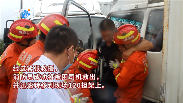 ?????? 9月5日13時許,文登區西泊石村口發生一起車禍。一輛廂式貨車因躲避前方停靠的車輛時,不慎與旁邊另一輛廂式貨車相撞,司機被困車中。轄區龍山消防救援站有關人員,立即趕赴現場救援。