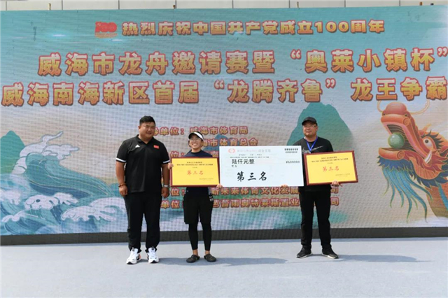 ??????經過激烈的角逐,最終,聊城市東昌府區龍舟隊、威海南海龍舟隊、青島大學龍舟隊分獲專業組一、二、三名。威海福建商會龍舟隊、奧萊小鎮星海外灘龍舟隊、北京交通大學威海校區龍舟隊分獲本地組一、二、三名。
