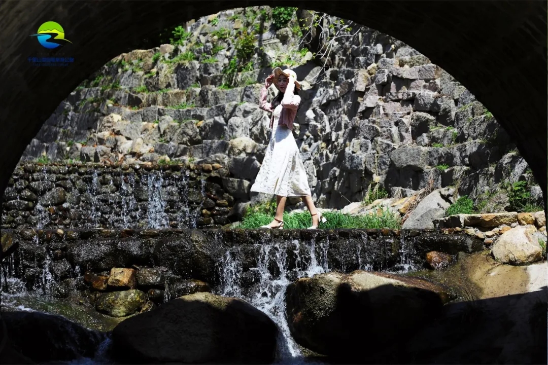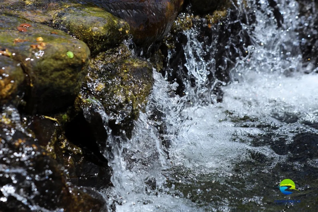 尋水而行,山澗草木翠綠,溪水清澈見底。堤壩處有小型的瀑布,潺潺溪流聲,宛如林間天籟,充盈在靜謐的山野。