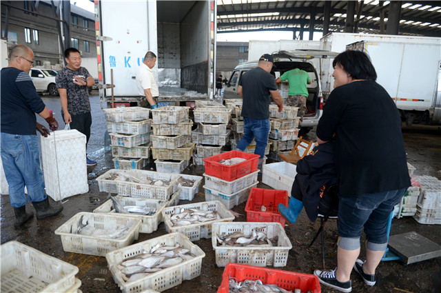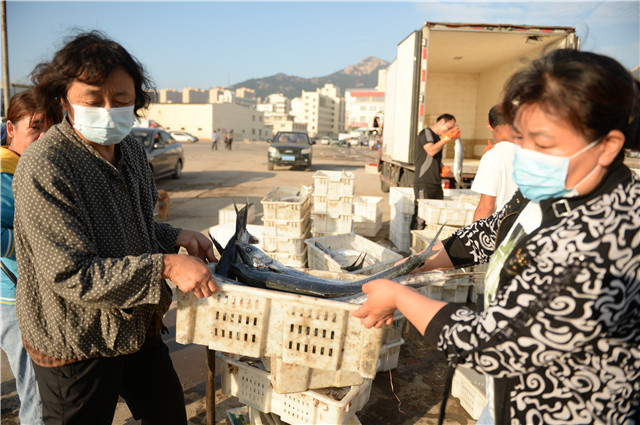 ??????9月18日,山東省榮成市石島管理區石島漁港一派繁忙景象,漁民們正在卸魚,商販搶購海鮮漁貨發往“雙節”市場。