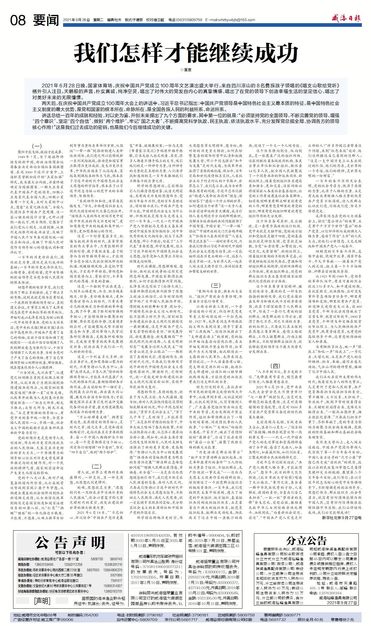 威海日報 2021-09-28