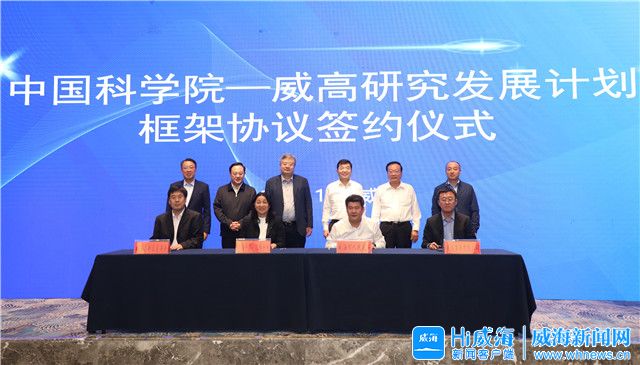 ??????會上,市政府與中國科學院沈陽分院、高區管委、威高集團四方共同簽署《中國科學院—威高研究發展計劃框架協議》,四方將圍繞我市醫療產業規劃、行業共性難題以及威高集團主營業務發展需求、戰略規劃等深化合作,不斷提高我市新醫藥與醫療器械產業集群核心競爭力。(Hi威海客戶端記者 初佳倫/文 王彥博/圖)