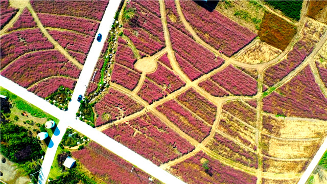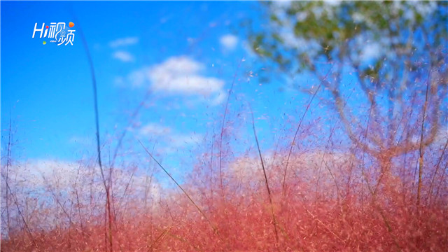 ??????威海臨港經濟技術開發區汪疃鎮后白鹿村整片粉黛亂子草唯美盛放,粉色的花穗如煙似霧,十分夢幻。(拍攝:夏菲)