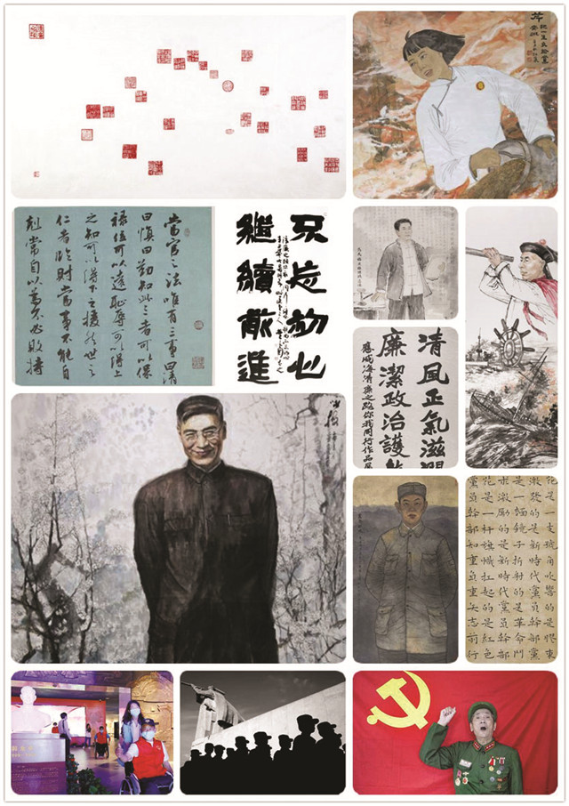 ??????如果說,書法作品以正氣蕩人心弦,那么,一幅幅獨具特色的繪畫作品則是與歷史廉吏、紅色基因、時代脈搏緊緊相連。駐足《“清廉之路”人物譜》組畫前,你會深切感受到谷牧等老一輩革命家立黨為公、執政為民、嚴于律己、清正廉潔的崇高品德,郭永懷以身許國、精忠報國、淡泊名利、傾心盡瘁的赤子之心,張玉華軍紀嚴明、戰功赫赫、兩袖清風、樸實高潔的滿腔赤誠,殷樹山不忘初心、永葆忠誠、熱心公益、傾情奉獻的為民情懷,遲念佳深藏功名60載、對黨和人民沒有任何要求的忘我精神;同樣會深切感受到馬石山十勇士英勇無懼、挺身而出的犧牲精神,膠東乳娘不畏生死、全心哺育革命后代的大愛精神……