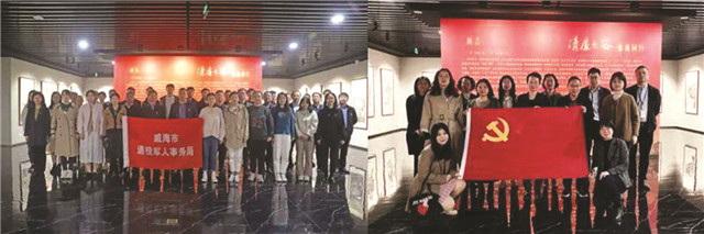 ??????威海“清廉之路·你我同行”書畫攝影展在市群眾藝術館正式開展后,吸引了全市各級各部門單位的黨員、干部前來觀展學習,開展主題黨日活動。