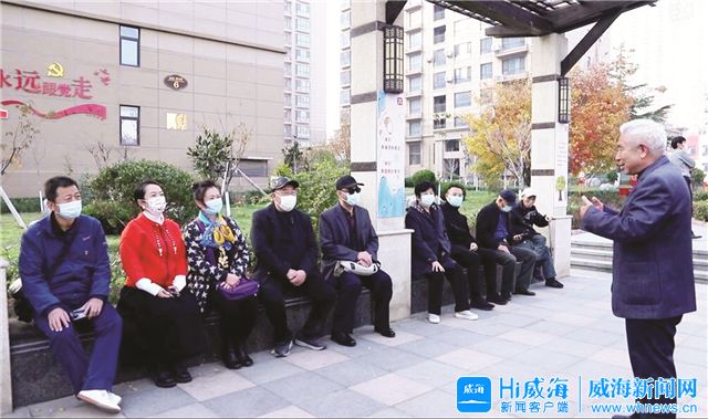 ??????下午3時,居民姜仲范與閑下來的老鄰居們坐在一起,講著從社區(qū)黨課上學(xué)來的黨的十九屆六中全會精神。