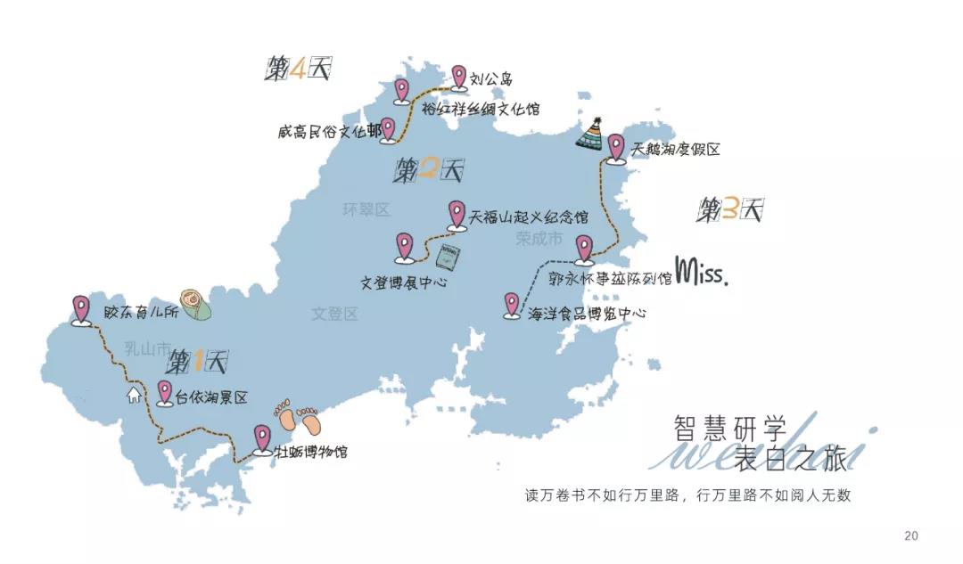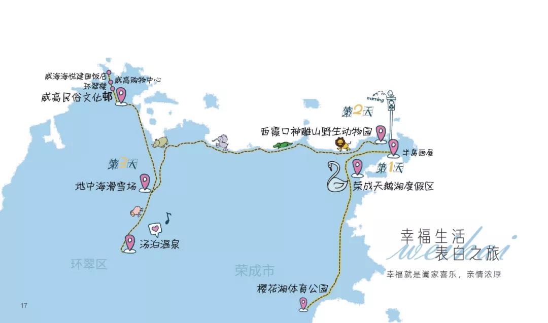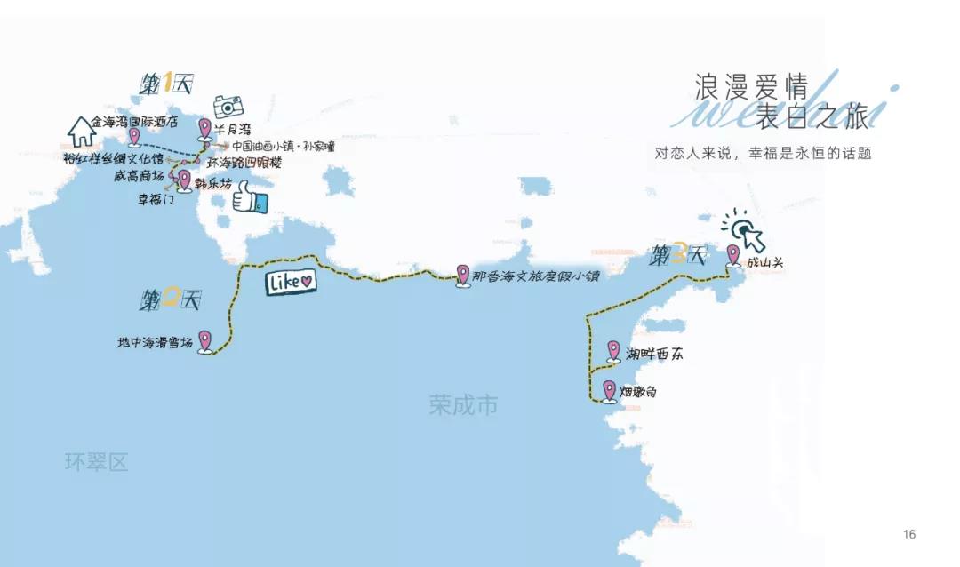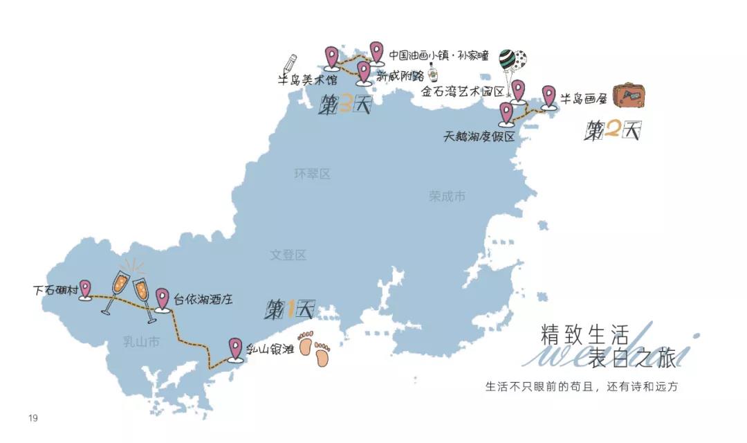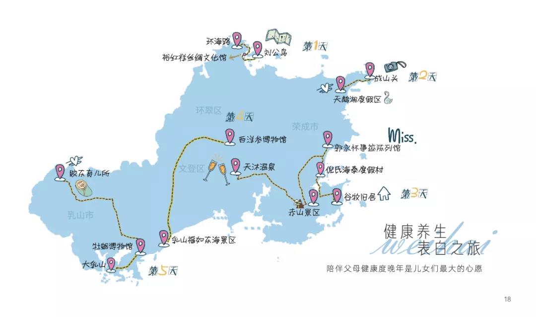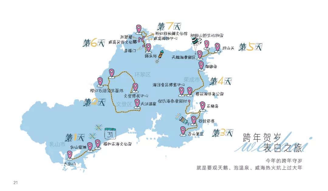 ??????推薦打卡地:孫家疃·油畫小鎮、環海路四眼樓、櫻花湖體育公園、貓頭山、幸福門、小五隊·抱海驛站、韓樂坊、那香海·天鵝湖驛站、成山頭、煙墩角、地中?;﹫?、歐樂坊。