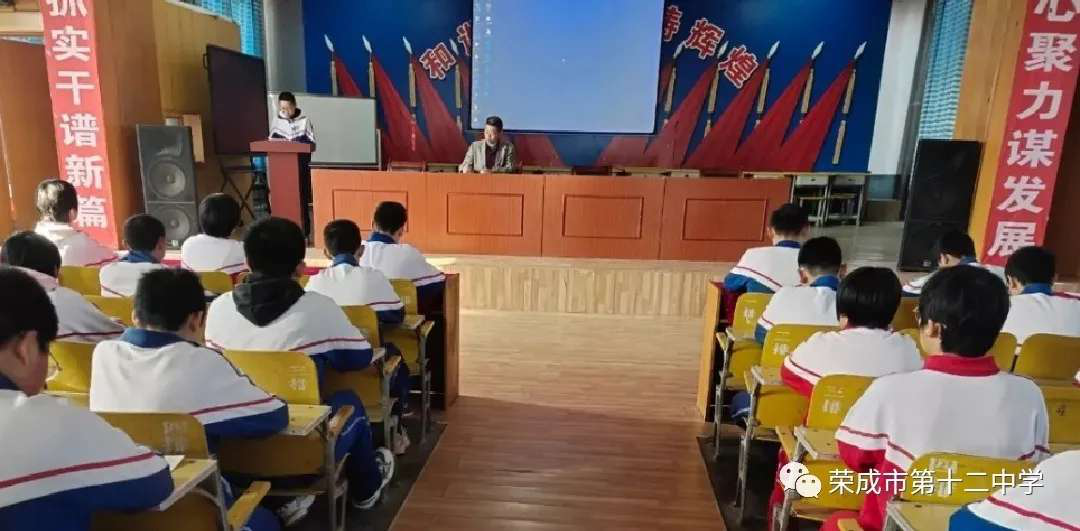 近日,為表彰先進,激勵學(xué)子奮發(fā)進取,以最佳狀態(tài)積極學(xué)習(xí),期中過關(guān)檢測后,榮成市第十二中學(xué)初四年級在階梯教室召開了總結(jié)大會。會議由肖振龍主任主持,初四全體師生與會。