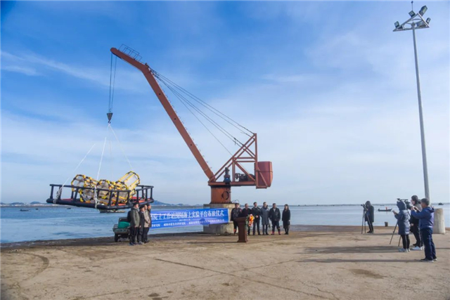 ??????日前,在榮成成山灣,威海(榮成)世代海洋生物科技股份有限公司確權(quán)的萬畝海域,一座引人注目的圍隔海上實(shí)驗(yàn)平臺(tái)在這里投放。這是由山東省海洋負(fù)排放焦念志院士工作站在此設(shè)立的科技實(shí)驗(yàn)平臺(tái)。山東大學(xué)海洋研究院、威海市藍(lán)色經(jīng)濟(jì)研究院、威海(榮成)世代海洋生物科技股份有限公司共同參與了這項(xiàng)養(yǎng)殖模式 “碳”索工程。這是山東省海洋負(fù)排放院士工作站首個(gè)下水的實(shí)驗(yàn)平臺(tái)!專家稱這是海帶“賣碳”的又進(jìn)一步!