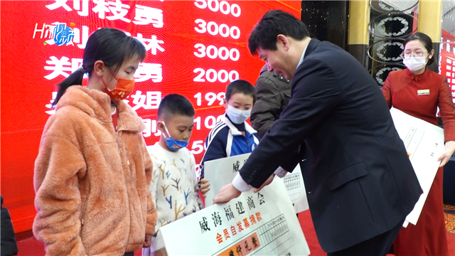 ??????12月4日晚,在威海福建商會(huì)年會(huì)上,多家企業(yè)和個(gè)人向來自環(huán)翠區(qū)橋頭鎮(zhèn)、羊亭鎮(zhèn)及外來務(wù)工家庭的10名困難學(xué)生獻(xiàn)上愛心。