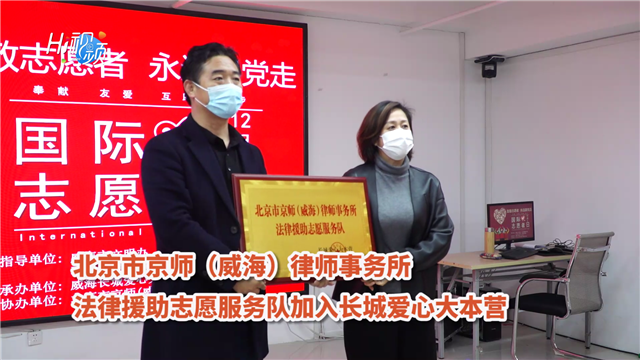 ??????12月5日是國際志愿者日,也是長城愛心大本營納新的日子。當天上午,退役軍人愛心車隊、北京市京師(威海)律師事務所法律援助志愿服務隊正式加入長城愛心大本營,成為志愿服務路上的生力軍。退役軍人愛心車隊及北京市京師(威海)律師事務所法律援助志愿服務隊的授旗儀式,在部分殘疾人代表及與會嘉賓的見證下莊嚴舉行。