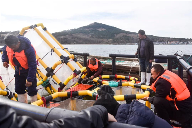 ??????11月28日,海帶苗入海的季節(jié)。圍隔海上實驗平臺在榮成成山灣世代海洋萬畝海帶養(yǎng)殖碼頭下水,將監(jiān)測海帶栽培、養(yǎng)殖全生命周期產(chǎn)生有效碳匯的相關(guān)數(shù)據(jù)。