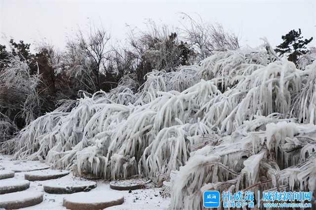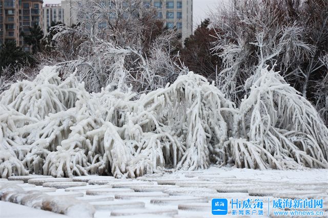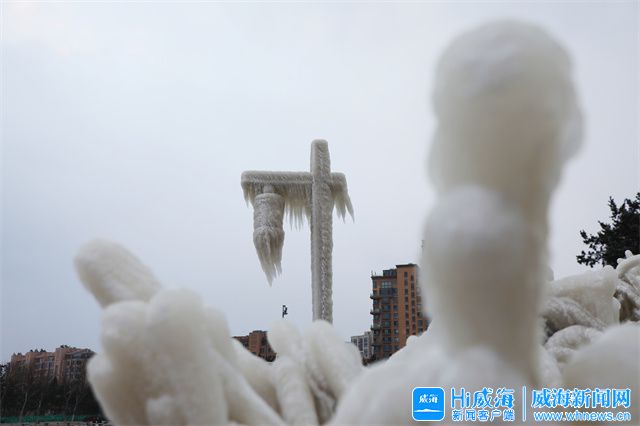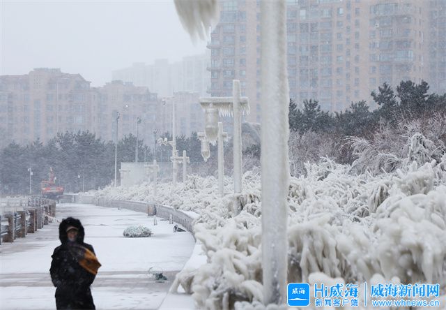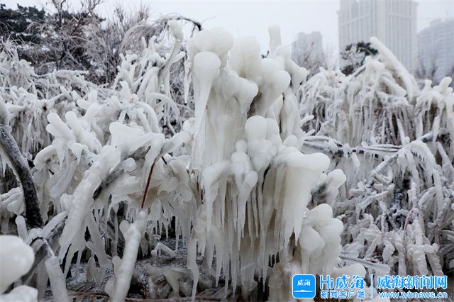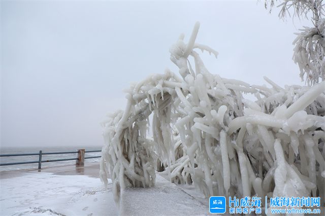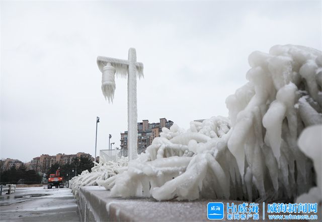 ??????受強冷空氣影響, 12月25日,威海公園海邊出現了冰凌,冰凌晶瑩剔透,美不勝收,快來欣賞。