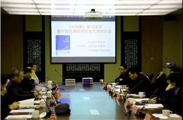 二〇一九年一月,長篇報告文學《大風歌》研討會在京舉行。對于這部填補了中國改革開放40年關于民營經濟宏觀敘事的著作,與會專家予以高度評價。中國作協副主席、中國報告文學學會會長何建明在發言中說,《大風歌》,是一部極有大風氣度的作品,氣勢恢宏,將山東作家的磅礴氣勢展現的淋漓盡致。作者對報告文學的書寫掌握得非常好,文筆、文本都非常成功。中國作協副主席張煒說,看了《大風歌》感到很驚訝,出乎意料,作者胸中裝大事,考慮問題有高度。大的格局和細節、細部的結合特別好。可以說,作品的成功不光是題材重大,有深度,而且語言也非常好。與會專家同時指出:《大風歌》一書體現了作者的擔當意識和家國情懷,氣勢磅礴,是2018年報告文學創作極具分量的一部作品,可謂重量級收獲。著名文學評論家,中國報告文學學會理論委員會副主任、教授張立國則直言不諱,他認為,就憑這部《大風歌》,作者完全可以躋身于中國報告文學作家的第一方隊。最起碼,這也是一部男子漢寫就的“硬漢文學”。