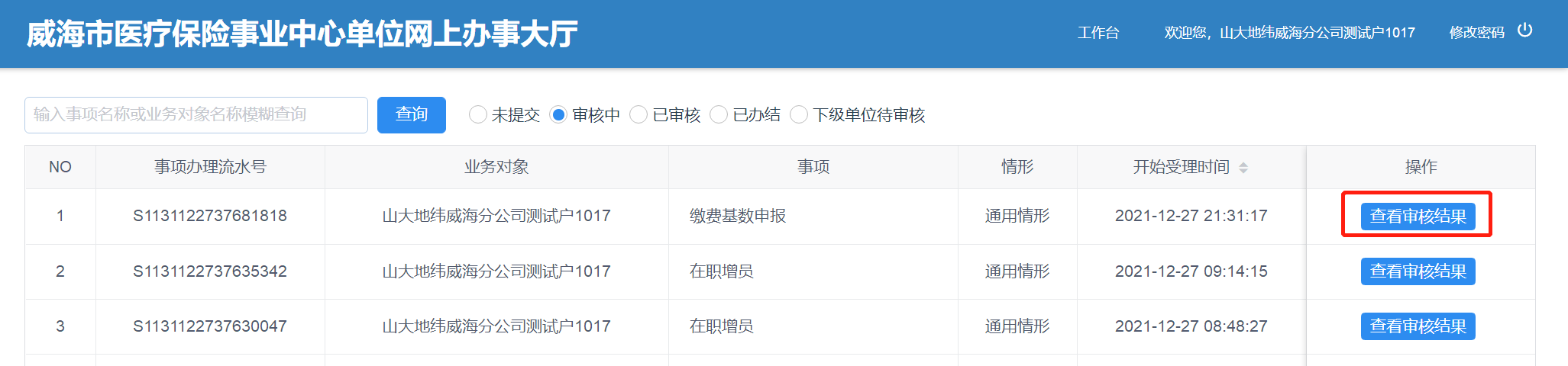 ??????8.提交后,企業即可查看審核結果,核對受理信息姓名、繳費工資準確無誤后,點擊“完成”。