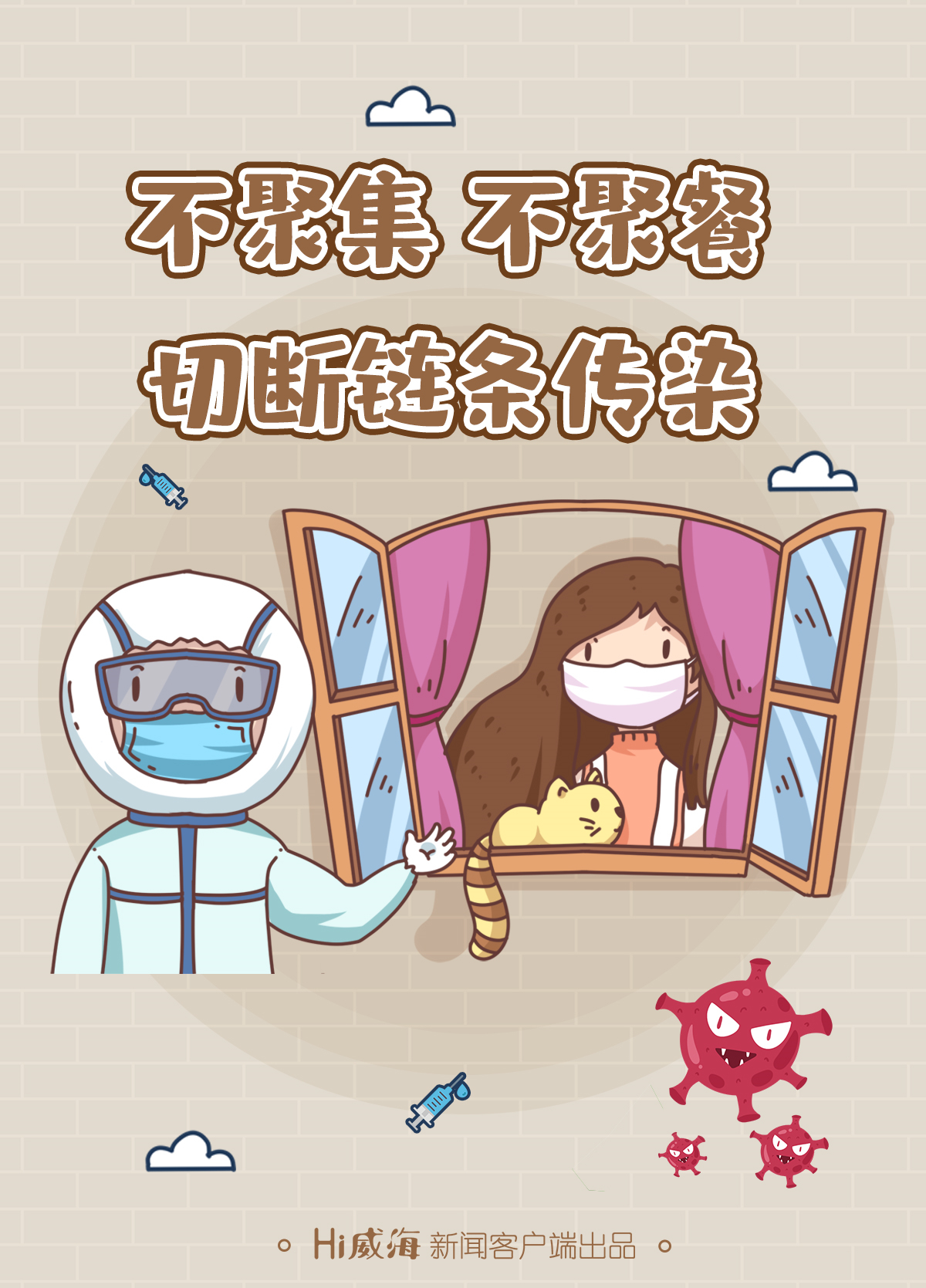 ??????五、做好自我健康監測。密切關注自身及家人的身體狀況,特別是家中有外地返威的學生、親友等,一旦出現發熱、咳嗽、乏力、腹瀉等癥狀,請佩戴口罩及時到就近的正規醫療機構發熱門診就診,就診過程中盡量避免乘坐公共交通工具。