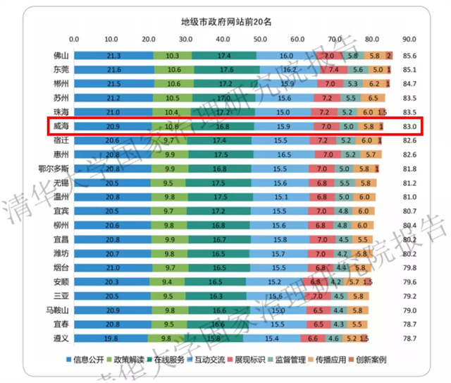 ??????2021年12月30日,清華大學國家治理研究院、公共管理學院聯合舉辦2021年數字政府清華論壇,發布了《2021年中國政府網站績效評估報告》。評估結果顯示,威海市政府網站在全國地級市政府門戶網站中排名第六,在計劃單列市、省會城市和其他地級市政府門戶網站中位居第21名,被列于“優秀”梯度(共30名)。