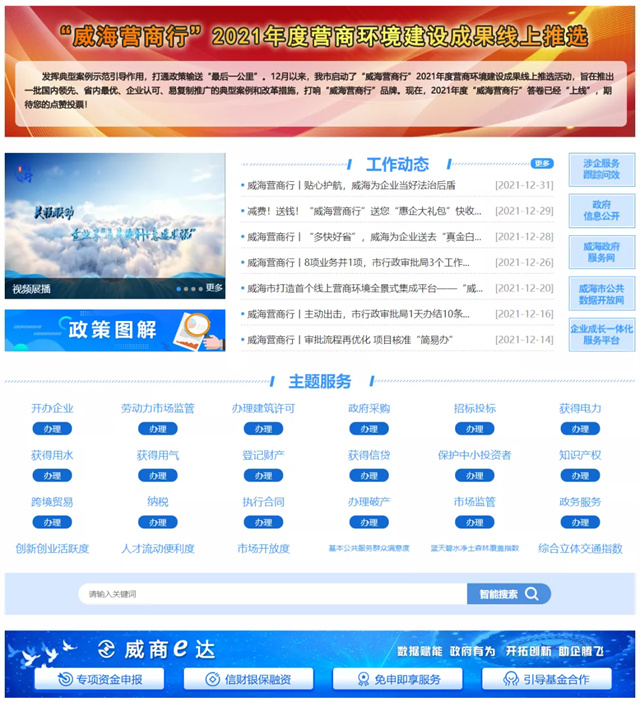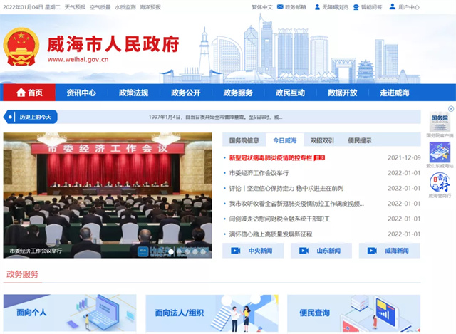??????近年來,威海市高度重視政務公開工作,不斷加強政府網站建設管理工作,積極適應數字化政府轉型需求,以提升能力、改善服務為目標,聚焦市政府重點工作,在政府信息公開、政策解讀、數據開放、互動交流、政務服務等方面持續發力,不斷提升網站管理水平和政務服務能力。