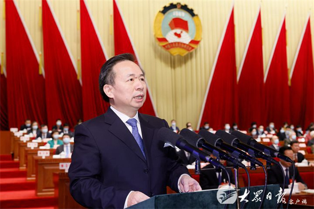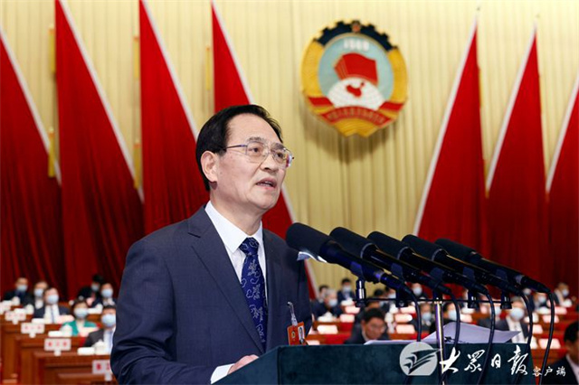 ??????劉均剛代表政協第十二屆山東省委員會常務委員會作提案工作報告。