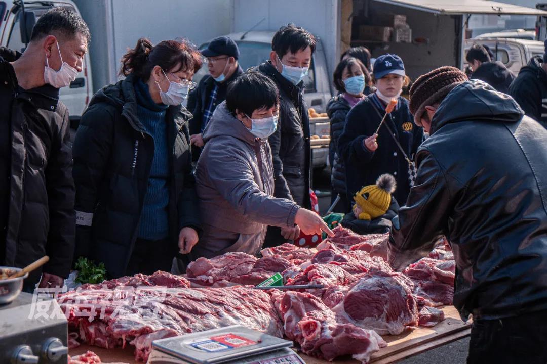 ??????過(guò)大年,趕大集。一個(gè)集市人來(lái)人往,肉食的香、糖果的甜、家庭的暖,從一雙又一雙的手里接力,傳遞到一家又一家團(tuán)圓的餐桌上。