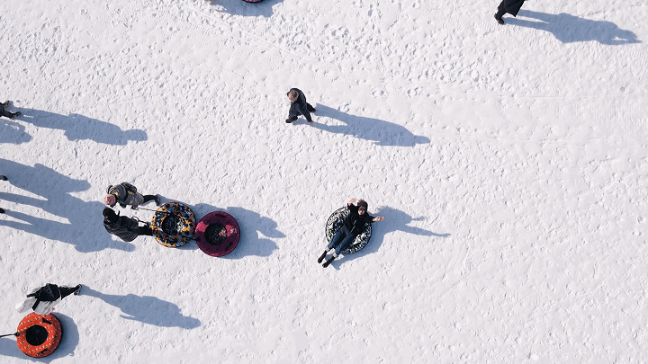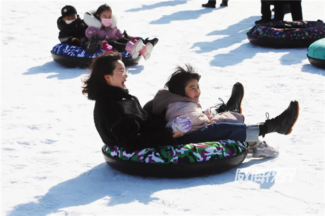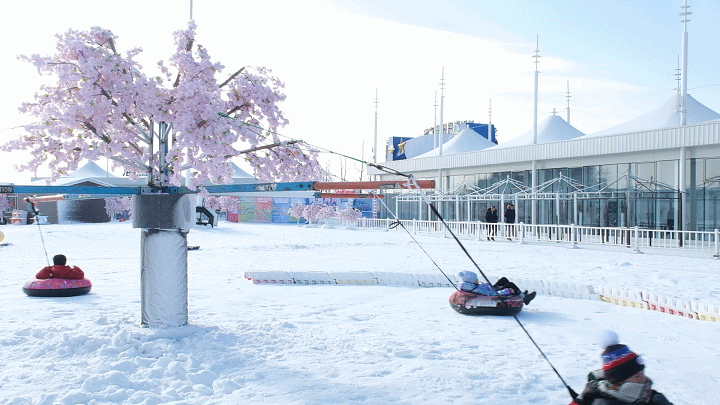 ??????在潔白的雪地和湛藍的天空交相映襯下,一個百米高的巨型雪滑梯進入眼簾。坐著雪圈飛馳而下,伴隨著腎上腺素的快速飆升,感受直飛向下的沖刺感,尖叫聲與歡呼聲此起彼伏,似乎所有的壓力都在一瞬間釋放。