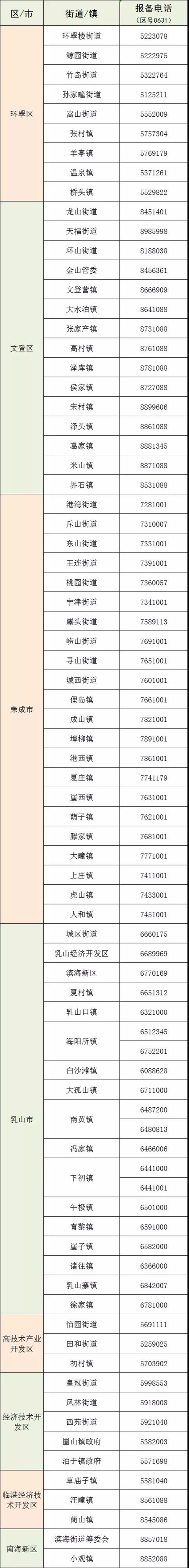 ??????各街道/鎮報備電話