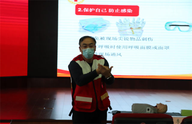??????2月25日,市醫(yī)保局聯(lián)合黨建共建單位威海農(nóng)商銀行舉辦“救在你身邊”應(yīng)急救護(hù)培訓(xùn)會,會議由威海市紅十字博眾應(yīng)急救護(hù)服務(wù)中心主任尹佐軍授課。