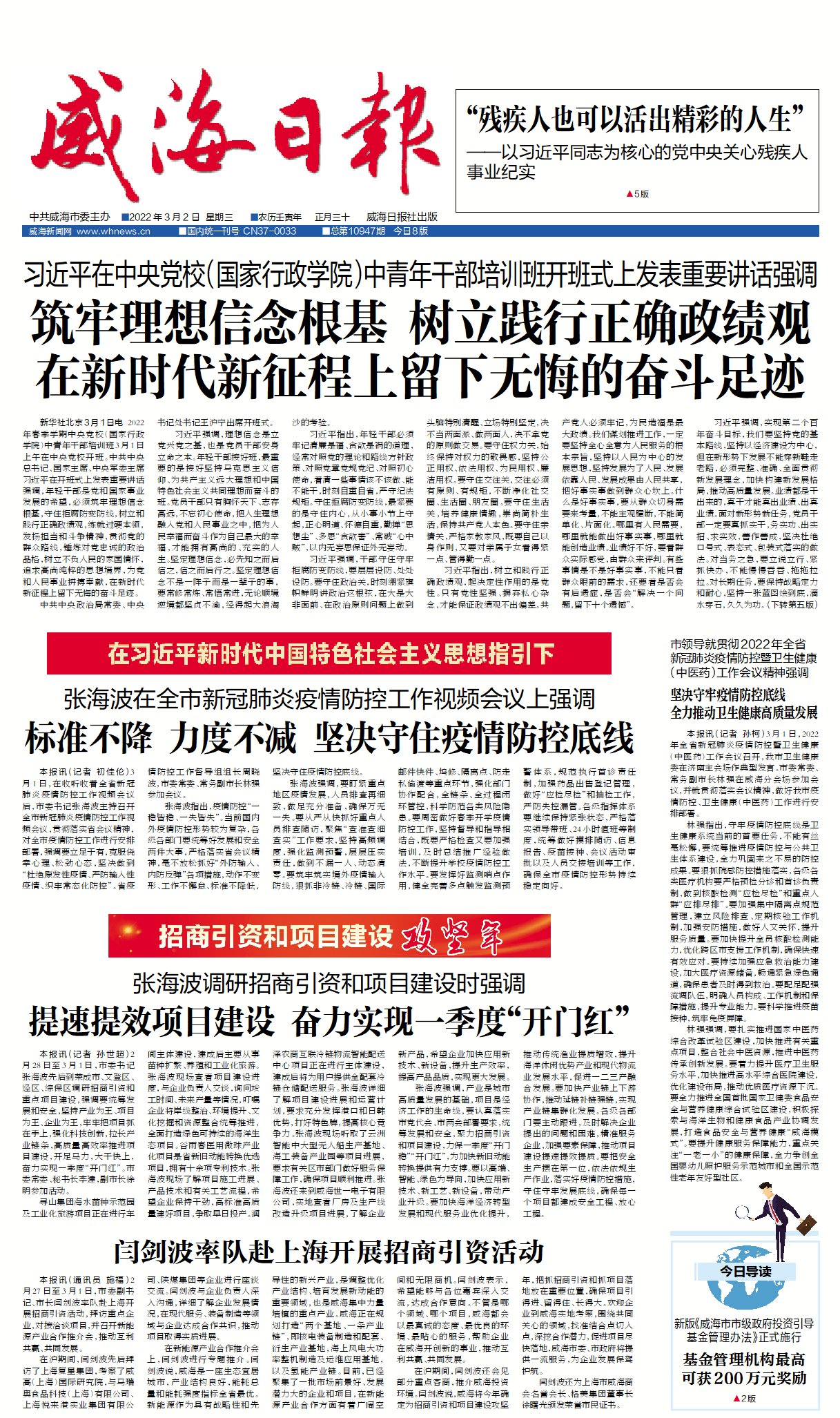 威海日?qǐng)?bào)2022-03-02