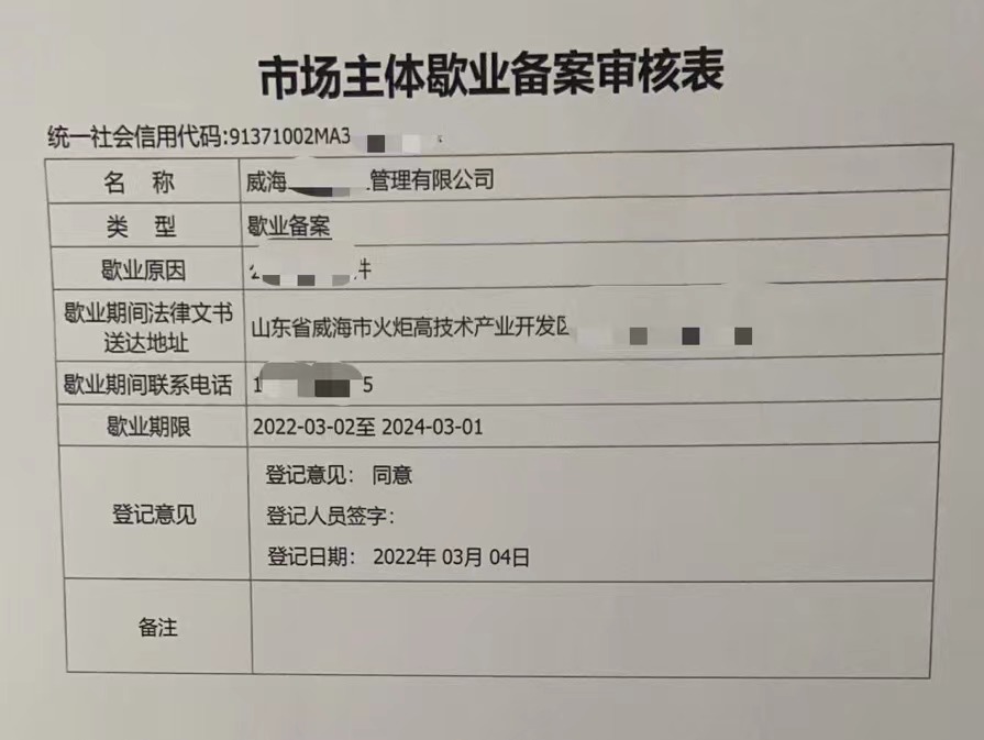 ?????3月4日威海翠姑商業(yè)管理有限公司通過(guò)全程電子化辦理了企業(yè)歇業(yè)備案手續(xù),這也是全市首家完成“歇業(yè)備案”的企業(yè)。威海翠姑商業(yè)管理有限公司因?yàn)槿肆Τ杀旧仙推髽I(yè)運(yùn)營(yíng)成本增加而經(jīng)營(yíng)困難。企業(yè)辦事人員表示:“我們公司目前只想暫時(shí)休整一段時(shí)間,如果直接注銷了,后續(xù)再想繼續(xù)經(jīng)營(yíng)還要重新辦理執(zhí)照,太麻煩。現(xiàn)在辦理了歇業(yè),三年之內(nèi)隨時(shí)能恢復(fù)營(yíng)業(yè),降低了經(jīng)營(yíng)成本,公司重整旗鼓再出發(fā)的勁頭兒更足了!”