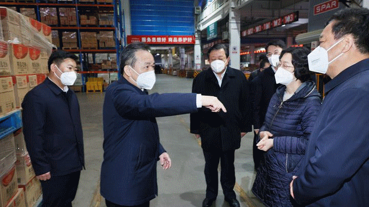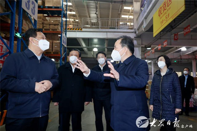????生活物資保供關系廣大群眾正常生活和疫情防控大局。李干杰首先來到家家悅集團威海物流中心,詳細了解企業疫情防控和物資儲備、運輸、調配等情況,察看庫存生活必需品及日常用品。李干杰強調,要全力保障廣大群眾特別是封控區、管控區居民生活必需品的供應,盡最大努力滿足群眾日常所需。要加強企業全鏈條全過程疫情防控工作,加密工作人員健康監測和核酸檢測,確保人員健康和物品安全。