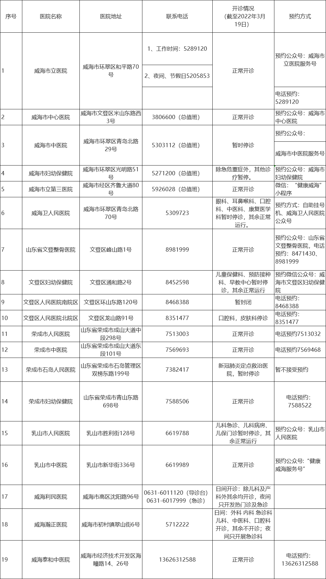 威海市二級(jí)以上綜合醫(yī)院、中醫(yī)院、婦幼保健院的開(kāi)診情況及預(yù)約方式