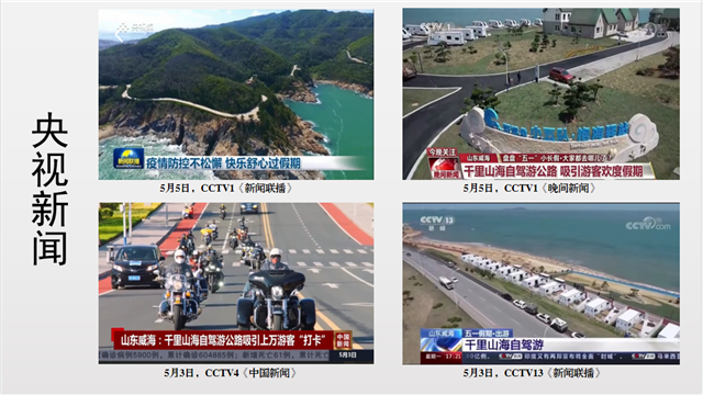 ??????歷時兩年,隨著千里山海自駕旅游季、重機摩旅節等200余項品牌活動、營銷事件落地,千里山海自駕旅游公路成為文旅新IP,有效帶動目的地熱度上漲492%,威海成為全國自駕游目的地的黑馬城市,多次入圍全國熱門旅游度假目的地TOP10榜單。項目榮獲山東省政府文化創新獎,入選文旅部《地方交流》典型案例,六次登上央視新聞聯播等品牌欄目,人民網、新華網、央視網、中國旅游報等全國200余家權威媒體深度報道。
