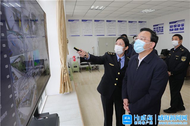 ??????在山東港口威海港、經區進口非冷鏈集裝箱貨物集中監管專倉、進和物流有限公司進口非冷鏈集裝箱貨物集中監管專倉,閆劍波詳細了解進口貨物申報、查驗、靜置、放行等工作流程,通過視頻監控等方式查看倉內貨物搬運、消殺、靜置等情況,仔細詢問專倉內工作人員個人防護、輪崗安排情況,和工作人員一道分析潛在的風險,研究防范措施。