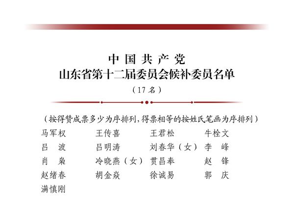 中國共產黨山東省第十二屆委員會候補委員名單